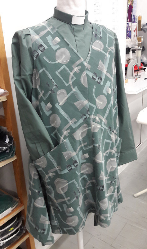 Ateljé Solemniksessa tehdään vaatteet kaiken kokoisille seurakunnan työntekijöille. Teemme mittatyönä juuri sinulle sopivat vaatteet ja asusteet joustavasti ja ammattitaidolla. Toteutamme niin pienet muutokset perustuotteidemme istuvuuteen ja ulkonäköön kuin yksilölliset ideat jostain ihan uudesta. Jos löydät hauskan kankaan, jota valikoimissamme ei ole, tuo se meille ja teemme siitä sinulle toivomasi vaatteen!